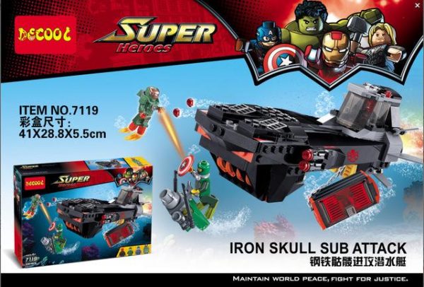 DECOOL 7119 Iron Skull Sub Attack Super Hero Compatible LEGO 76048 contains 335 pieces, first released in 2020. This DECOOL 7119 belongs to Super Hero category and comes with manual instruction book which is easy to build and find the missing pieces.