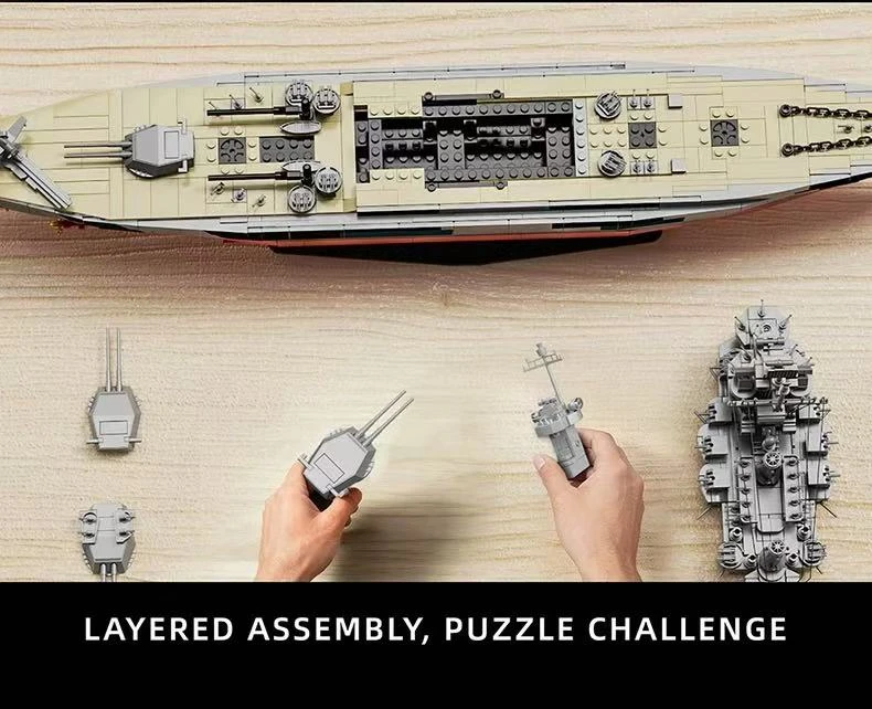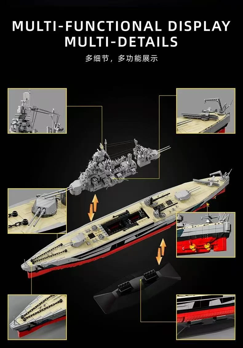 Armament Realism: Includes the signature four twin-mounted 16-inch (406 mm) main gun turrets. These turrets are fully rotatable, and the barrels can be elevated independently.